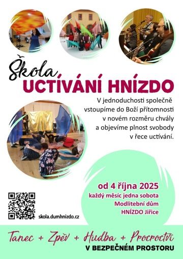 Vždy první sobotu v měsíci se budeme půl roku setkávat při společném uctívání, vyučování, praktických workshopech a se zajímavými hosty. Naší touhou je vést vás do chval a uctívání od základu a postupně, tak abyste měli dostatek času získané znalosti prohlubovat, vstoupili do větší a hlubší intimity s naším Otcem, porozuměli tomu, co ohlašujete do duchovní oblasti a objevovali svá obdarování a povolání na této cestě. Těšíme se na společná uctívání s vámi a věříme, že budou plná nových dobrodružství a radosti.